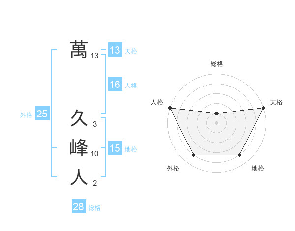 萬 久峰人さんの天格は13画の5点!
