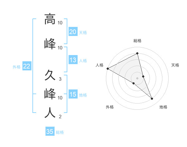 高峰 久峰人さんを姓名の画数から五運を鑑定