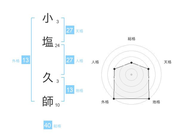 小塩 久師さんの外格は13画の5点!