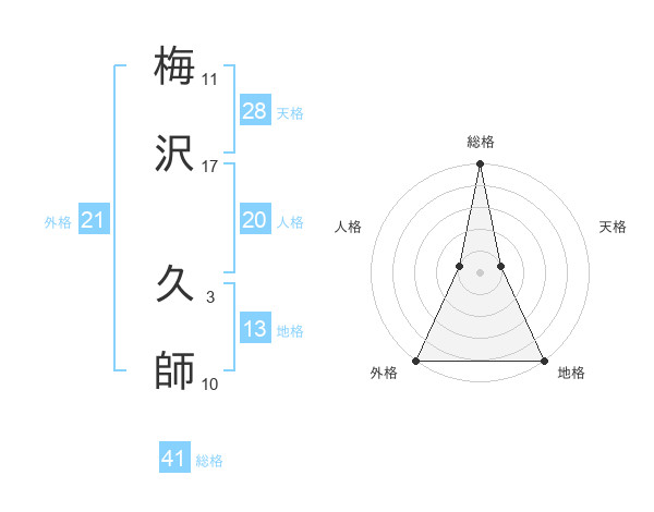 梅沢 久師さんの総格は41画の5点!