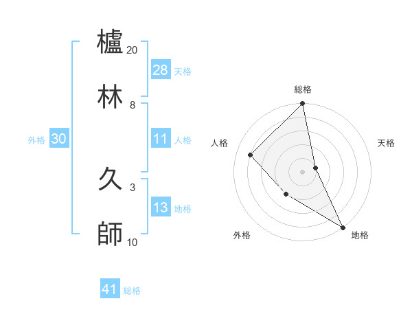 櫨林 久師さんの総格は41画の5点!