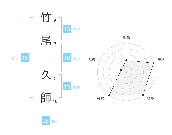 竹尾 久師さんの天格は13画の5点!
