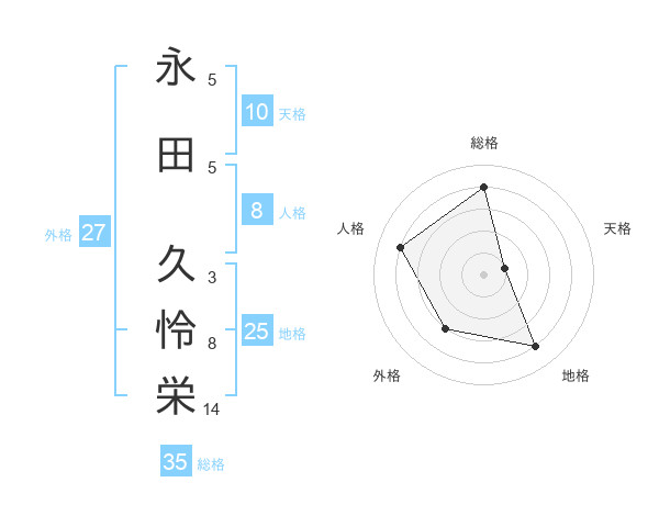 永田 久怜栄さんを姓名の画数から五運を鑑定