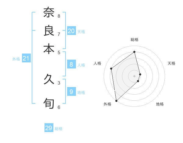 奈良本 久旬さんの総格は29画の4点!