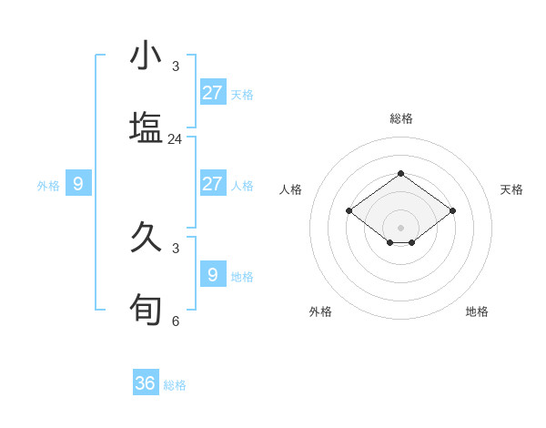 小塩 久旬さんを姓名の画数から五運を鑑定