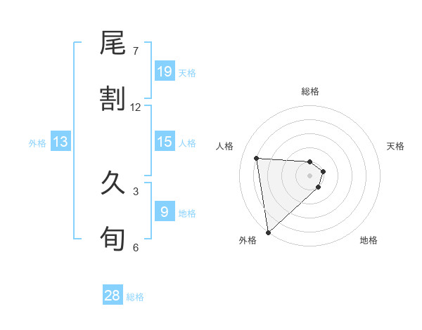 尾割 久旬さんを姓名の画数から五運を鑑定