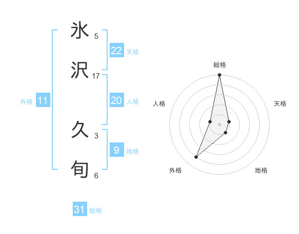 氷沢 久旬さんの総格は31画の5点!