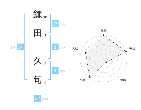 鎌田 久旬さんを姓名の画数から五運を鑑定