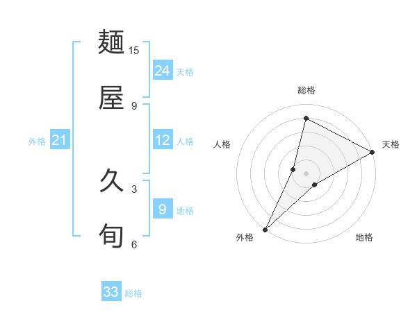 麺屋 久旬さんの総格は33画の4点!