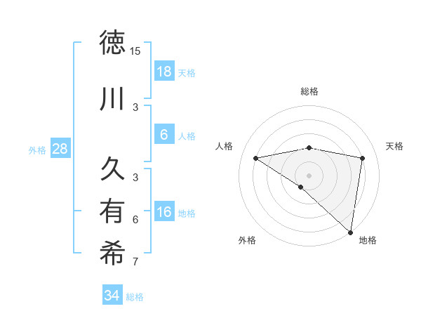 徳川 久有希さんを姓名の画数から五運を鑑定