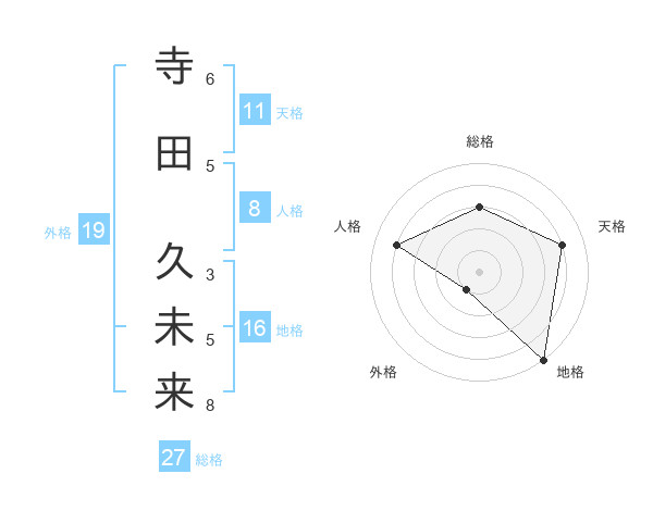 寺田 久未来さんの総格は27画の3点!
