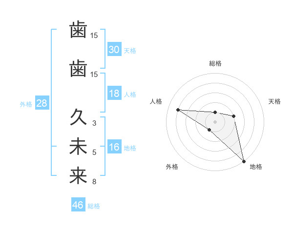 歯歯 久未来さんの天格は30画の2点!