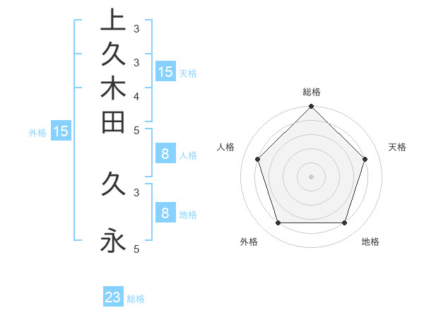 上久木田 久永さんの総格は23画の5点!