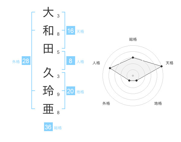 大和田 久玲亜さんを姓名の画数から五運を鑑定