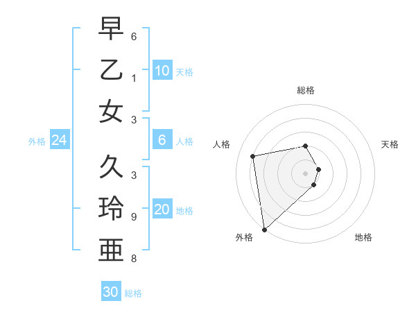 早乙女 久玲亜さんの総格は30画の2点!