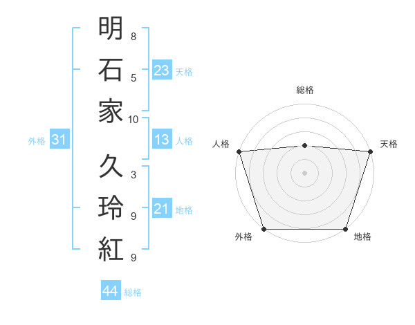明石家 久玲紅さんを姓名の画数から五運を鑑定