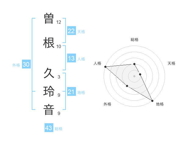 曽根 久玲音さんを姓名の画数から五運を鑑定