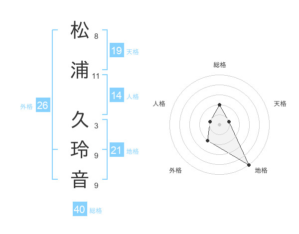 松浦 久玲音さんを姓名の画数から五運を鑑定
