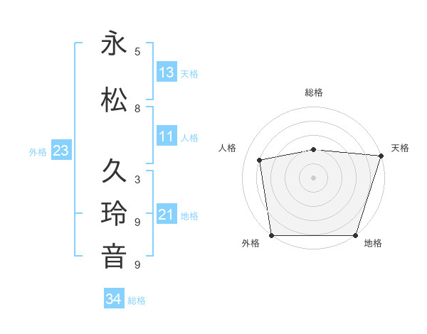 永松 久玲音さんを姓名の画数から五運を鑑定