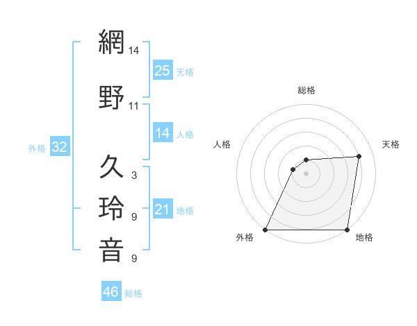 網野 久玲音さんの総格は46画の1点!