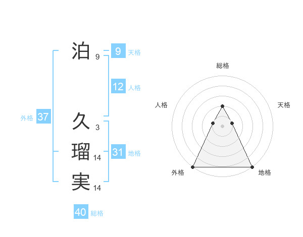 泊 久瑠実さんの総格は40画の2点!