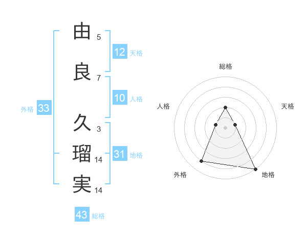 由良 久瑠実さんを姓名の画数から五運を鑑定