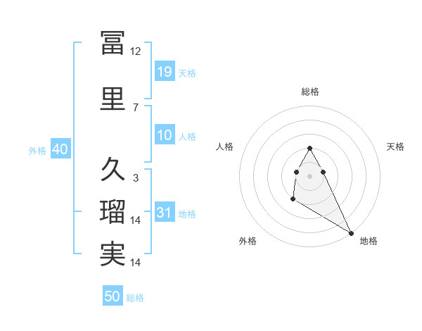 冨里 久瑠実さんを姓名の画数から五運を鑑定
