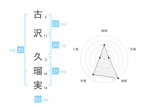 古沢 久瑠実さんを姓名の画数から五運を鑑定