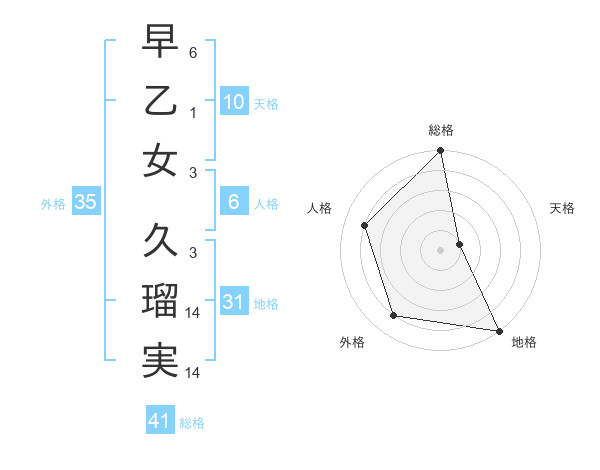 早乙女 久瑠実さんの総格は41画の5点!
