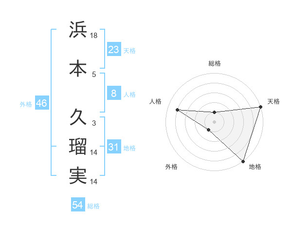 浜本 久瑠実さんの天格は23画の5点!