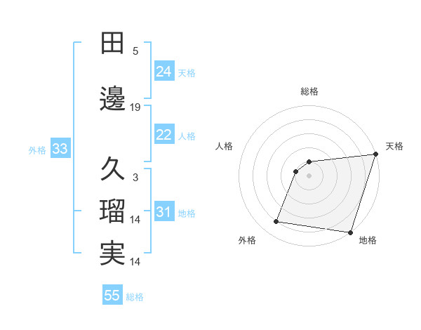 田邊 久瑠実さんの天格は24画の5点!