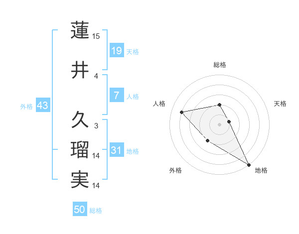 蓮井 久瑠実さんの総格は50画の2点!