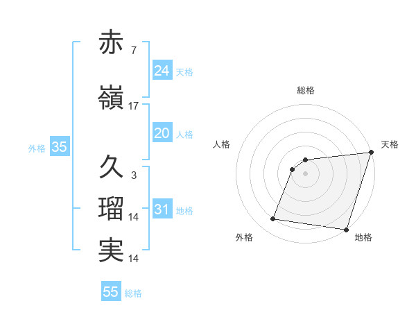 赤嶺 久瑠実さんの天格は24画の5点!