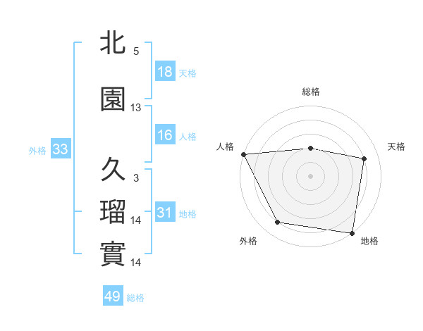 北園 久瑠實さんを姓名の画数から五運を鑑定
