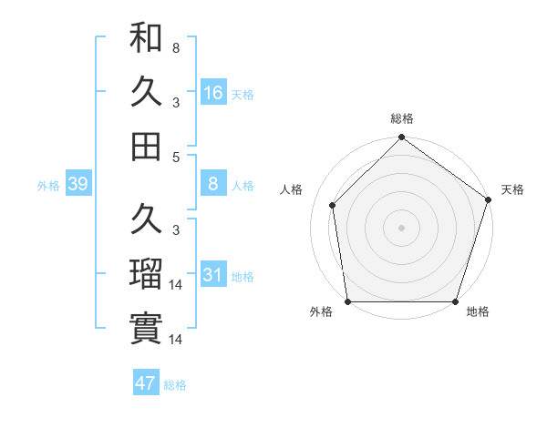 和久田 久瑠實さんの総格は47画の5点!