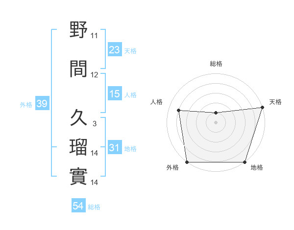 野間 久瑠實さんの天格は23画の5点!