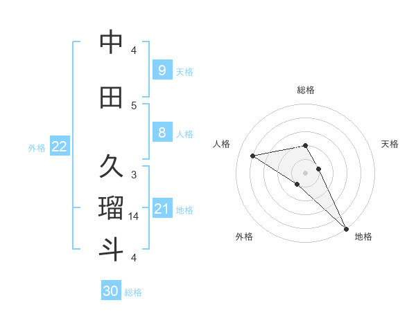 中田 久瑠斗さんを姓名の画数から五運を鑑定