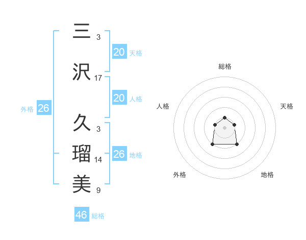 三沢 久瑠美さんを姓名の画数から五運を鑑定