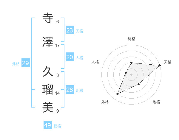 寺澤 久瑠美さんを姓名の画数から五運を鑑定