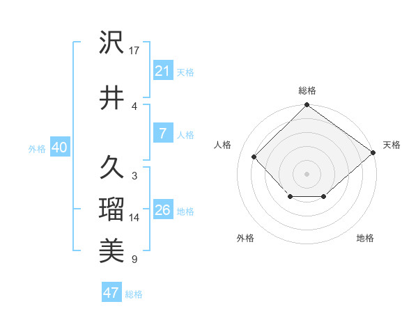 沢井 久瑠美さんを姓名の画数から五運を鑑定