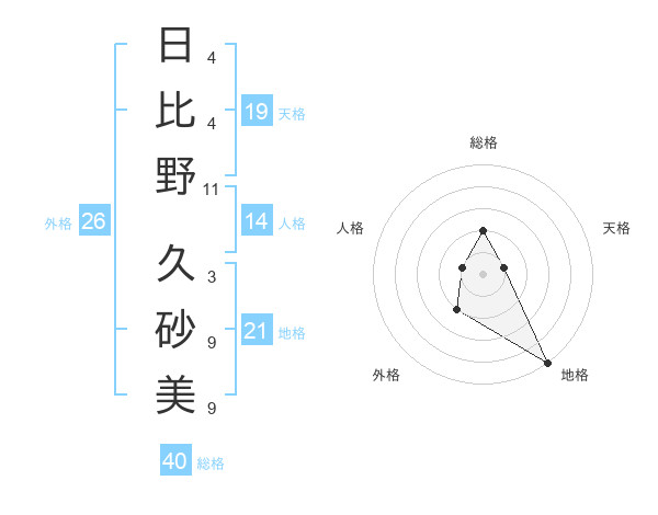 日比野 久砂美さんを姓名の画数から五運を鑑定