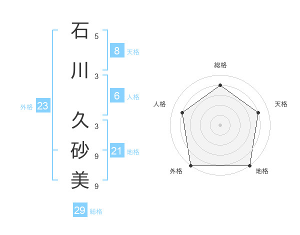 石川 久砂美さんの総格は29画の4点