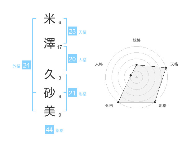 米澤 久砂美さんを姓名の画数から五運を鑑定