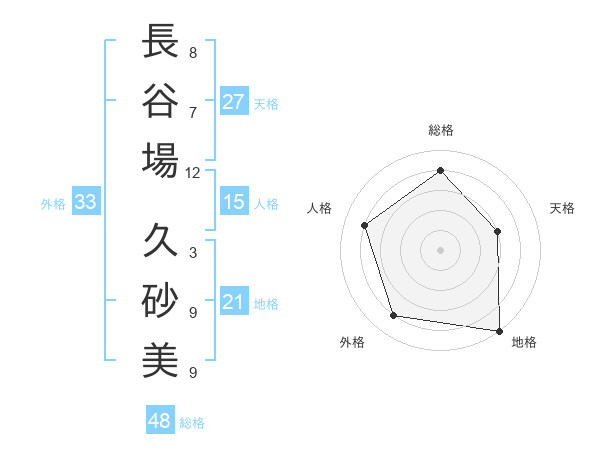 長谷場 久砂美さんを姓名の画数から五運を鑑定