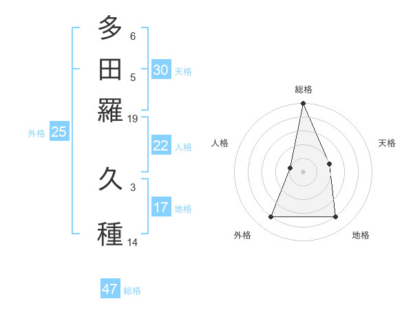 多田羅 久種さんを姓名の画数から五運を鑑定