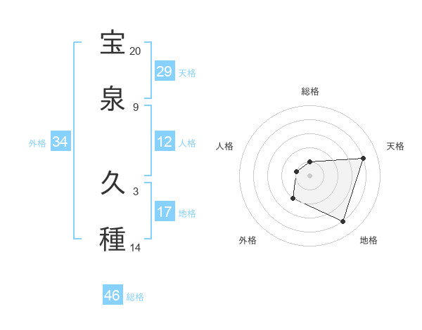 宝泉 久種さんを姓名の画数から五運を鑑定