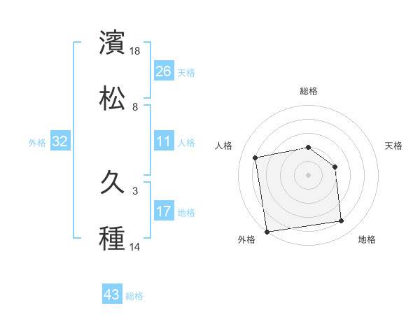 濱松 久種さんの外格は32画の5点!