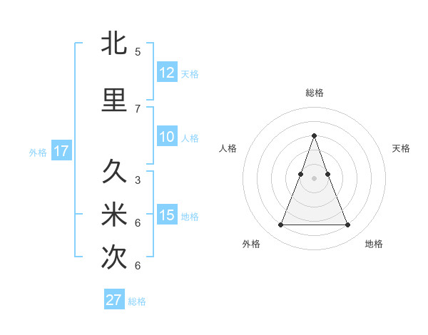 北里 久米次さんの総格は27画の3点!