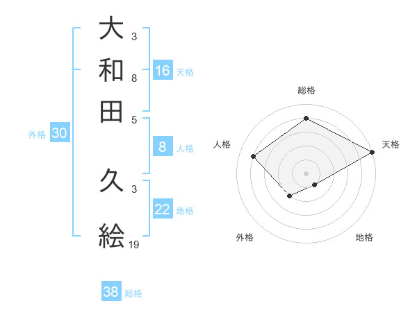 大和田 久絵さんの総格は38画の4点!