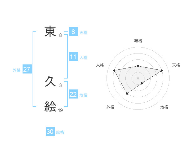 東 久絵さんの総格は30画の2点!